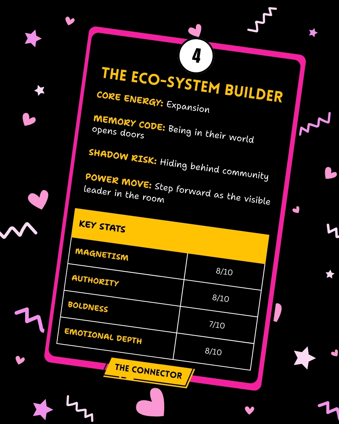 Connectors build rooms. They build communities. People feel safe around Connector Women. Connectors are conduits for opportunities.